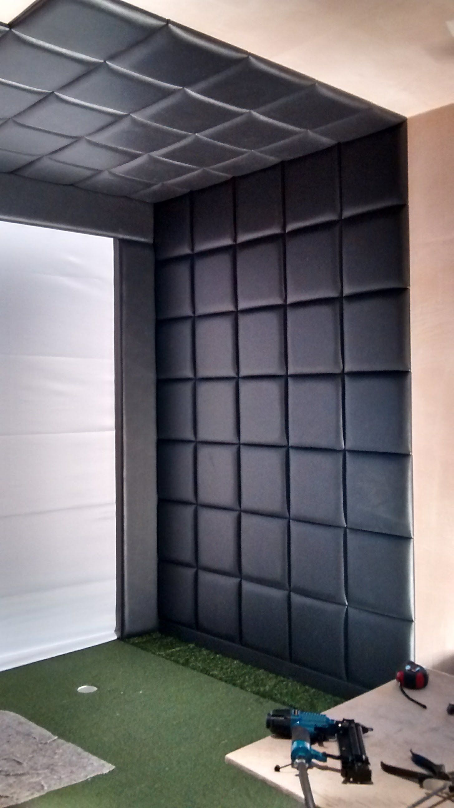 We have worked on many home and professional golf simulator projects - the most popular tiles are made from Faux Leather and can be made to fit your specifications. If you are starting a project and would like to find out more about Padded Wall Tiles for your Sim, drop us a message. We work for most of the leading golf sim companies and have supplied Tiles for prestigious projects both in the UK and shipped abroad.